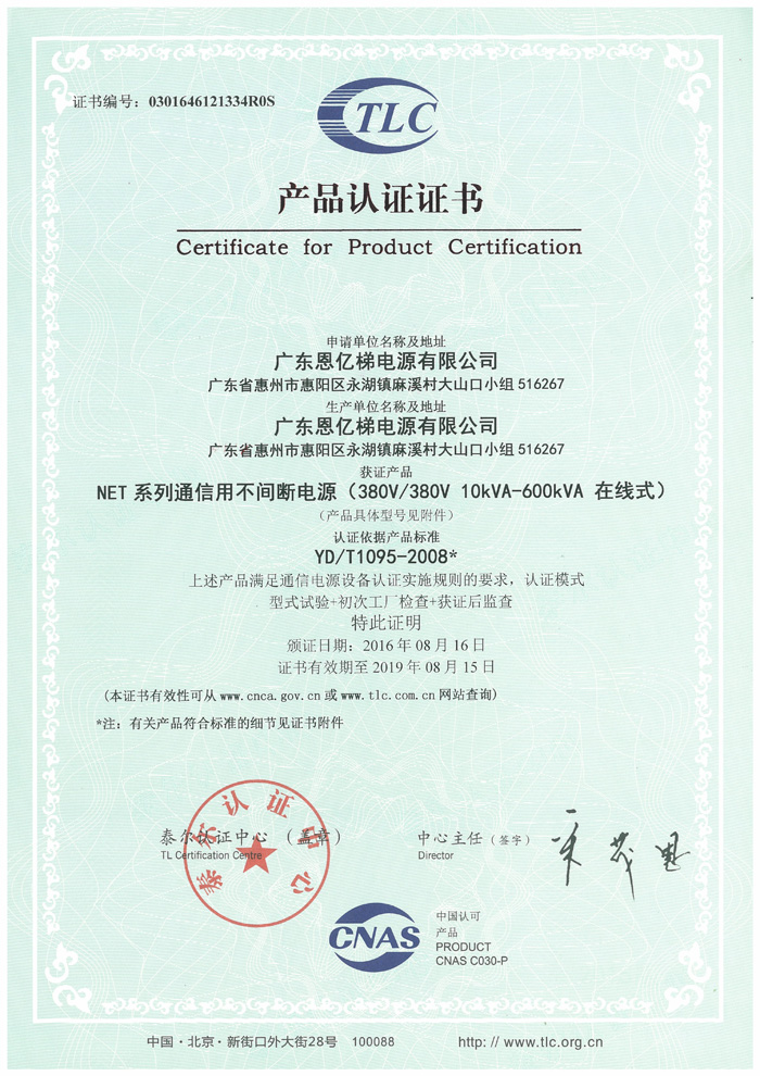 泰爾認(rèn)證(通信用不間斷電源)