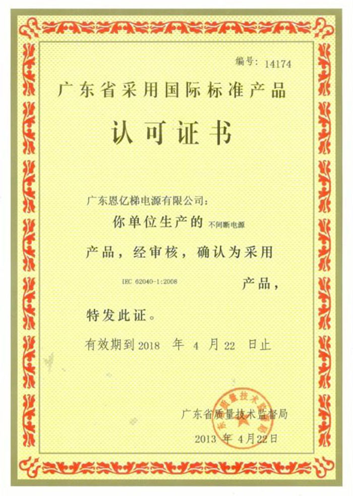 廣東省采用國際標(biāo)準(zhǔn)產(chǎn)品認(rèn)可證書