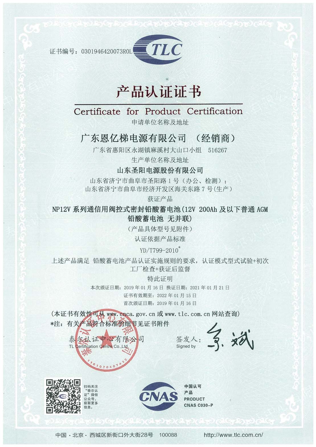 泰爾認(rèn)證(閥控式密封鉛酸蓄電池)