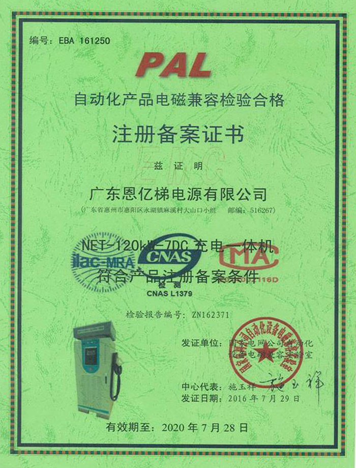自動化產(chǎn)品電磁兼容檢驗(yàn)合格注冊備案證書(充電一體機(jī))
